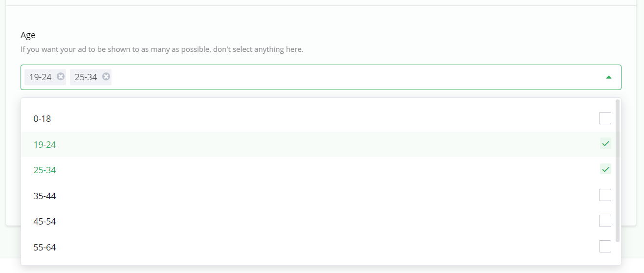 If you want to target your ads to audiences of a certain age you can select one or several age groups.