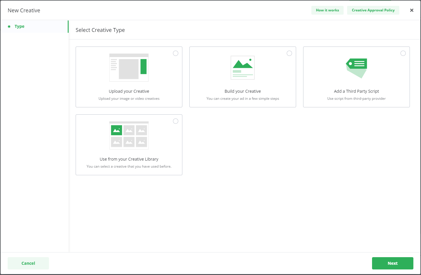 Select New Creative.