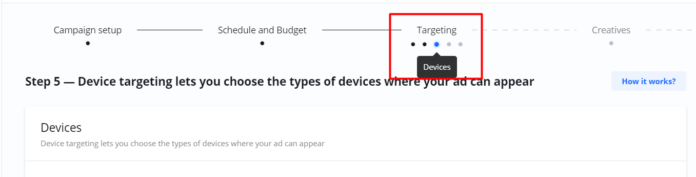 When you create or edit a campaign, the targeting options available for that campaign are grouped under Targeting.